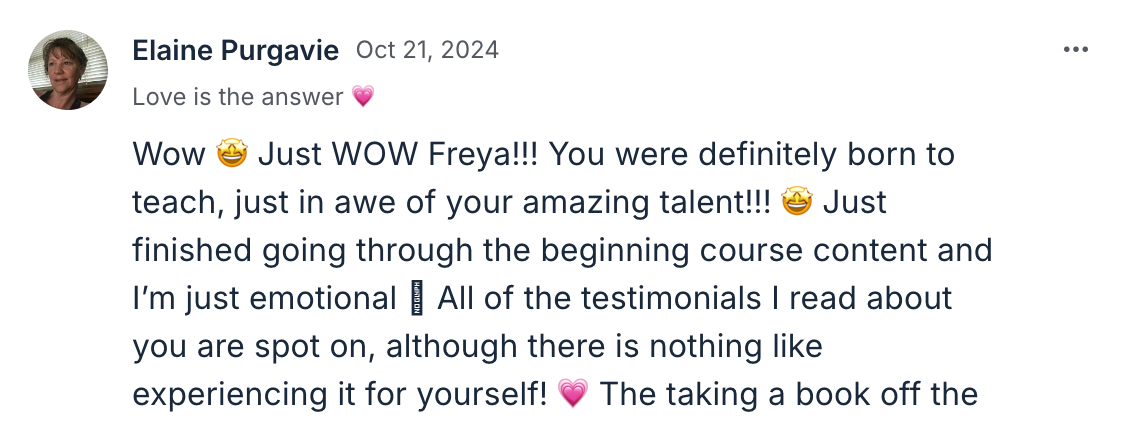 “Freya, your course has been a balm for my soul. Every class refreshes me and deepens my reverence for our bodies and this incredible way of understanding how they work. GNM as it is has blown my heart and mind wide open, but your course has taken my understanding to a way deeper level, answering questions I was struggling to find answers for through the common resources. I can't reccomend this course enough for anyone who wants to get a better grasp on GNM, and be a part of a group of women who are lovely, funny, and non judgemental. Freya's honest and grounded yet gentle style is awesome and it feels like you're chatting with and learning from a good friend instead of a teacher on a pedestal, which is JUST how this stuff should be learned!